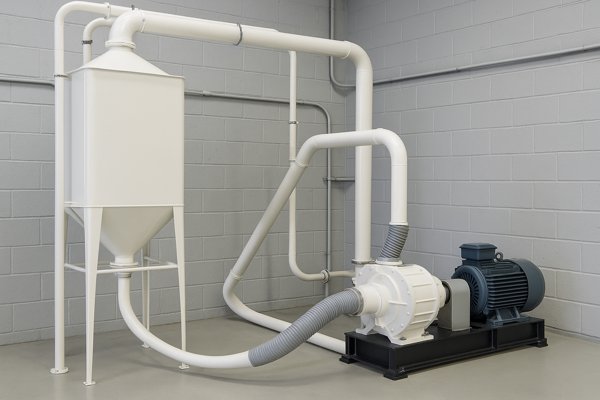 Скорость воздуха — должна быть достаточной, чтобы частицы не оседали, но не слишком высокой, чтобы не вызывать износ труб. Обычно 15–30 м/с.